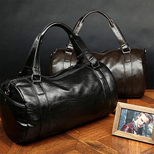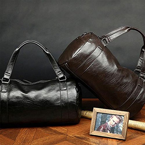 EASY BIG Men Sports Duffels for Gym Travel Bags Top PU Leather Handbag Totes
