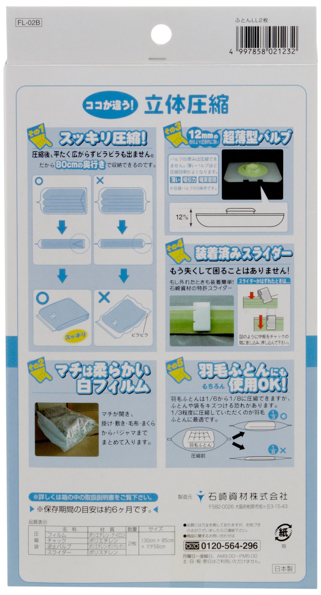 Since it is an ultra-thin valve with a thickness of 12 mm, it does not rise even if it is compressed, and it does not become an obstacle when storing futon compression bags in layers