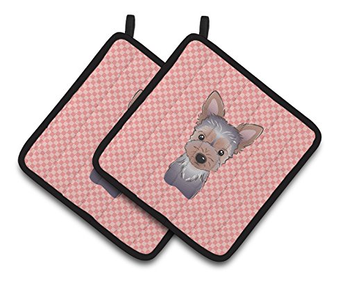 Caroline's Treasures Checkerboard Pink Yorkie Puppy Pair of Pot Holders BB1232PTHD, 7.5HX7.5W, Multicolor