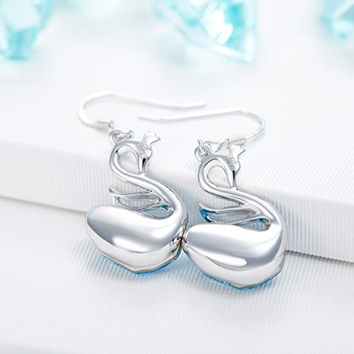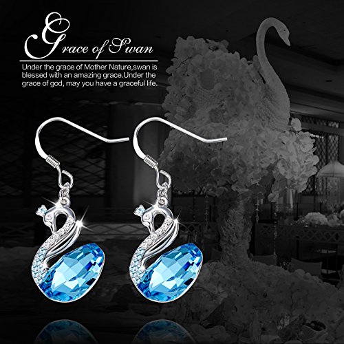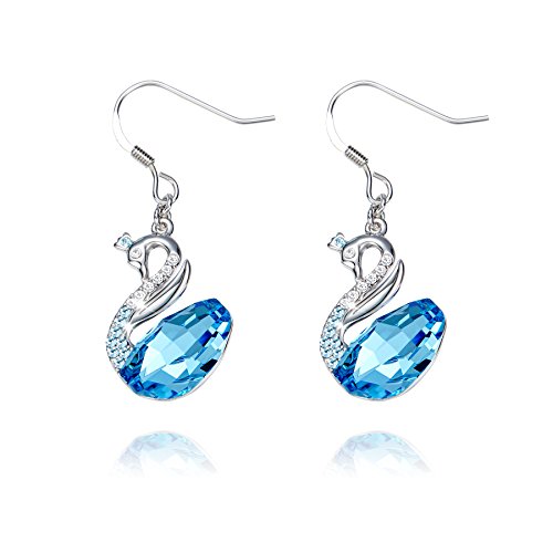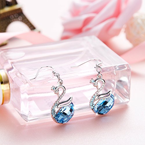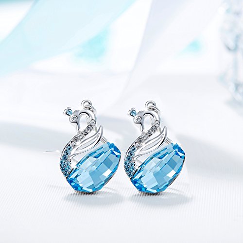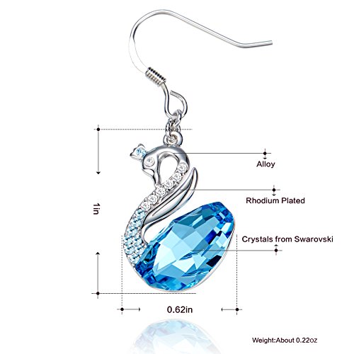 ♥BEST DESIGN:The concision design symbols women's independence and liberal.IWhite crystals adorn the neck and big blue crystal on body, create a sharp contrast.Alloy swan earring plated with platinum, present a nice noble look. This unique jewelry will make you as the focus of the crowd .