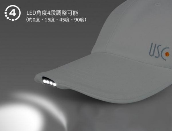 | 用途に合わせて、帽子先端部のLEDが角度調節可能!!暗い中での手元や足下の照明としても利用できます♪帽子の先端部・後端部のLEDが点灯・点滅することで、夜間の自転車乗車時やジョギングなど前方・後方及び側面からでも被視認性を高め、自動車などに存在を気づかせることができます。リチウムイオン電池による充電式のため、繰り返し使用でき経済的☆ |