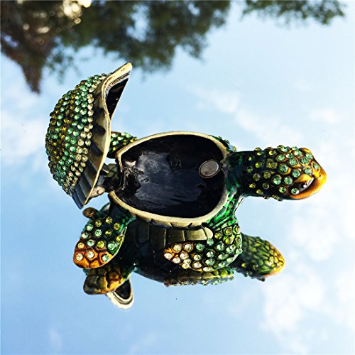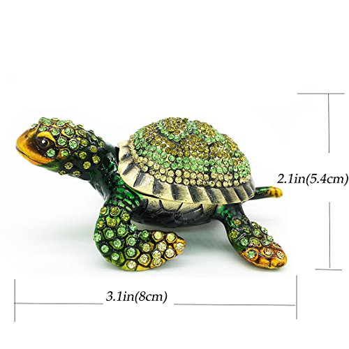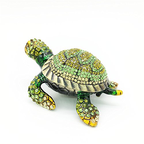 Waltz&F Diamond turtles Hinged Trinket Box Hand-painted Animal Figurine Collectible (green)