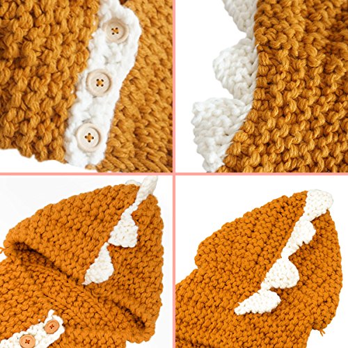 Binding : Apparel Product Description Characteristic: ※3 animal design crochet hats for kids. The orange one with animal fox ear, the white one has the bear ear, the yellow one is the cute dinosaur shape ※Great for kids that refuse to keep a hat on ※Slips it off and it functions as a scarf ※The baby girls boys winter hat scarf handcrafted products that are beautiful and durable ※It is super soft and so cuddly and great for cold or windy days ※It washable and dries beautifully Specification: ★Wight: Orange: 0.25kg White: 0.29kg Yellow: 0.28kg ★Item Type: Skullies Beanies ★Pattern Type: Animal ★Department Name: Children ★Style: Casual ★Gender: Unisex ★Material: Acrylic ★Thickness: Thick ★Season: Winter hat,Spring hat ★Hat type: Hat collar,hat and scarf,knitted cap with ears ★Featured: Crochet hat for children,hat for kids,kids beanie ★Function: Windproof,chill-proof ★Suits for :3-12 years old boys and girls,bonnet fille enfant Warm Notes: 1.The hat is Handcrafted product, so if there are some thread come out on the hat, please don't use the scissor to cut it, just use needlework to sew it. It will be more durable. 2.Wash separately from other fabrics.Do not bleach.Do not tumble dry. 3.Please slight color difference because of the environment light. 4.If you have any problem or confuse about the product, please fell free to contact us. We are pleasure to provide the best service for you. Thank you very much. Package includes: 1* Child Earflap Hood Scarves Hat 0
