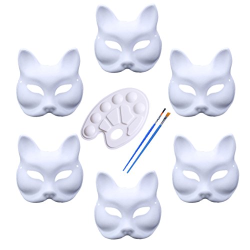 -. Title : DIY Mask,Coxeer 6 PCS DIY Handmade Half Face Mask Fox Plain Paper Cosplay Halloween Mask with Painting Brushes Palette