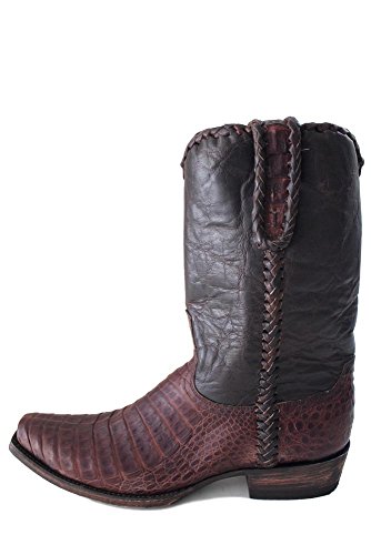 Binding : Apparel Product Description Old Gringo Plain 11" Pull-up Croc Chocolate Mens Boots M1821-5. Old Gringo Plain 11" Pull-up Croc Chocolate is handmade in good ol' Mexico exclusively for Boot Star by Old Gringo. Pull-up chocolate Caiman crocodile skin on the vamp with a chocolate vesuvio goat skin on the upper. Hand-lacing on side seams, scallop, and around pull straps; distressed brown sole and heel finish. Old Gringo boots go through a 130 step handmade production process. Old Gringo also develops and tans its own leathers and textures to ensure the results are the highest quality cowboy boots. Founded in 2000, Old Gringo combined exceptional boot making craftsmanship and design skills with 30 years of experience in leather manufacturing to create western wear and cowboy boots of superior style and quality. Old Gringo pushes the envelope with artisan handcrafted women's and men's cowboy boots and western wear that both captures the traditional "Old School" quintessential vintage charm and detail while offering contemporary cutting edge styles not surpassed by ordinary boot makers. Appealing to both the fashion boot loving and the professional, the Old Gringo boot collection continues to grow each season with new cowboy boot styles ranging from unique interpretations in Traditional Western, Vintage and Retro, Contemporary Fashion, Rock Star, Equestrian, and European Vogue. We are proud of our long-standing relationship with Old Gringo, and happy to offer both women's cowboy boots and cowboy boots for men. 0