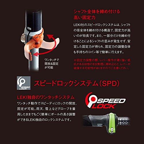 스피드 록 시스템에 의해 길이 조정이 스피디로 할 수 있는 모델이,보다 스포티한디자인가 되 신 등장. ●스피드 록 시스템:LEKI 독자적인 원터치 시스템 ●원크기피트 올 스트랩:파워 트리거로 새로운 스트랩의 탄생입니다.이 시스템이라면 S크기부터 L크기의 모두 에게 저스트 피트.스트랩의 크기를 선택하지 않습니다. ●스트랩:트리거3 ●알루미늄:항공기등으로도 사용되는 강도도 높은 알루미늄은,폴에게 최적인 소재입니다. ●《데후마쿠》