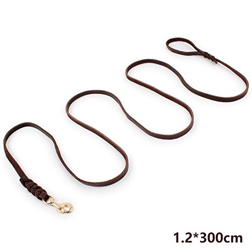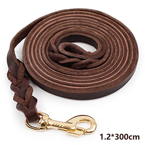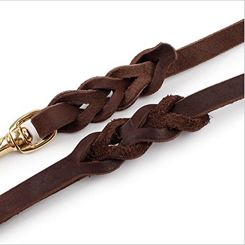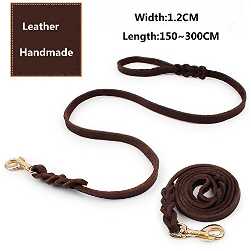 LANPA Cow Leather Dog Training Leash Dark Brown Leather Copper Alloy Hanger Lead for Dogs 59~11...