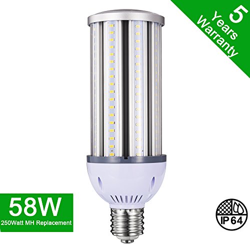 58W LED Corn Light Bulb,LED Street Light,250-300 Watt Equivalent, Large Mogul Screw Base (E39) Area Light,5000K (Crystal White Glow),360° Flood Light,Metal Halide Replacement,ETL & DLC
