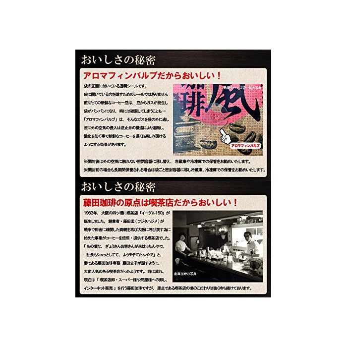 후지타 커피에서는 콩의 각각의 특성을 생각해 분별배전,블렌드 한다「애프터 믹스」이라고 하는 프로세스를 제조에 덧붙여 있습니다.따라서 다른 색의 원두커피나 분이 섞이고 있습니다.