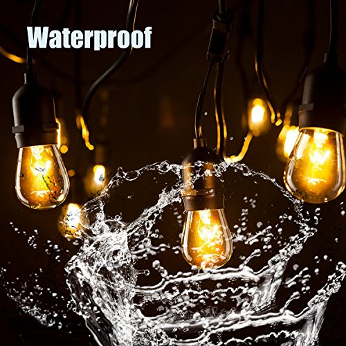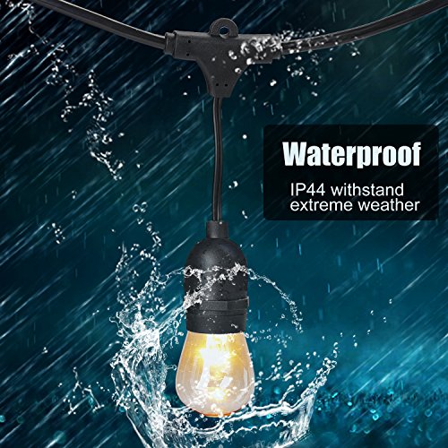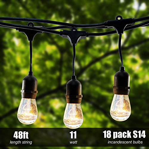 Outdoor String Lights, Bangcool 48 Foot Weatherproof Patio Lights for Halloween Decoration- UL Listed - 15 Hanging Sockets Bistro Lights, 18 11S14 Incandescent Bulbs Included for Party, Backyard