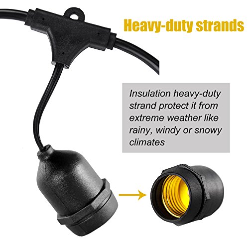 UL LISTED Top-Notch Quality ---- UL listed 48 feet black rubber weatherproof cord contains 15 weatherproof light sockets, set 3 feet part. These commercial-strength casing protect strands from extreme temperatures and rainy, windy, or damp climates. Confidently leave on display through summers winters.