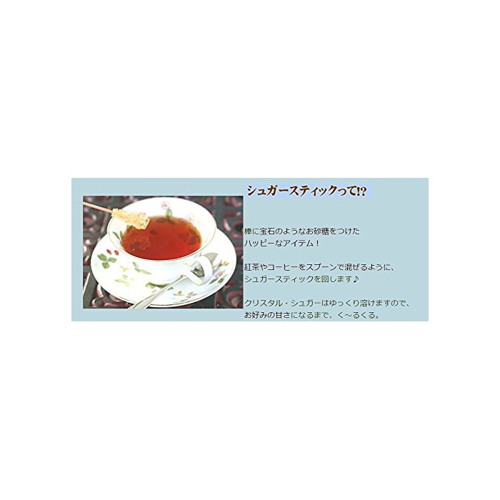 막대기에 보석과 같은 설탕을 붙인 해피인 아이템!홍차나 커피를 스푼에 혼합하는 바와 같이(하도록),슈가 스틱을 돌립니다♪크리스탈 슈가는 느긋하게 녹기 때문에,좋아하는 달콤함이 되까지,#~#게 된다.