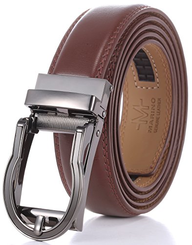 NO MORE HOLES - Marino's Fashion Ratchet Belt provides 38 unique adjustments for a superb comfortable fit. Easy removable buckle allows you to cut the belt to your ideal size to give a primmer and custom tailored appearance!