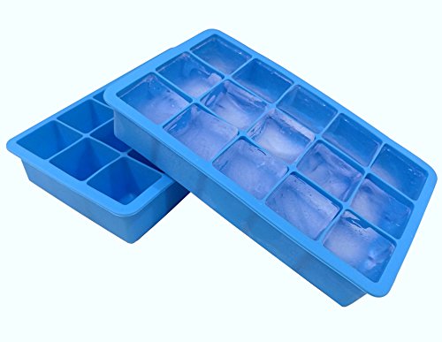 2-Pack Silicone Ice Cube Trays Make 15 Perfect-Sized Cubes - Great Molds for Ice, Candy, Cake, Chocolate - Make 30 Cubes - Beautiful Ice Blue by Skystone Direct!