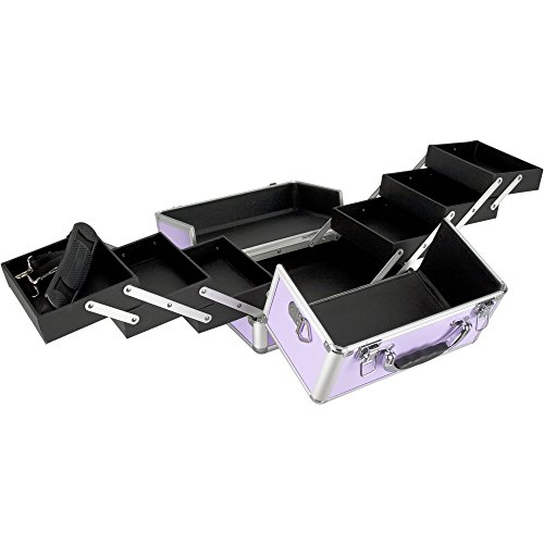 Sunrise C0001 3-Tier Accordion Trays Makeup Case with Shoulder Strap, 10-Inch, Smooth Purple