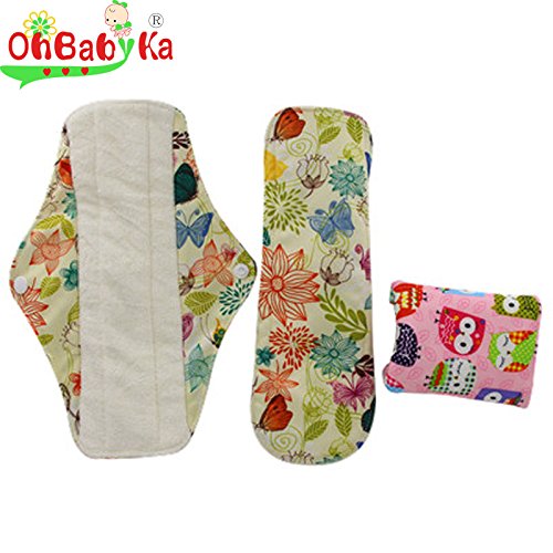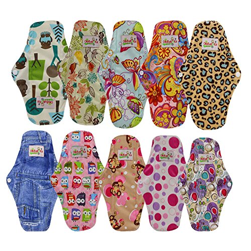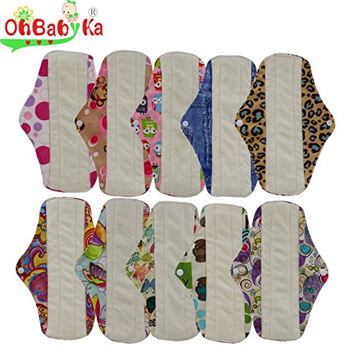 OHBABYKA Bamboo Reusable Sanitary Napkins Pads/Cloth Menstrual Pads for Women,a Mini Bag, Size M (Multi-colored,10pcs)