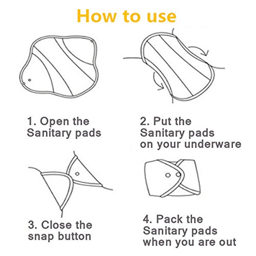 Easy to wash, stain free, naturally super absorbent.Made of soft,naturally super absorbent Antibacterial Bamboo fiber for a stay dry feel More Comfortable than Disposable Sanitary Pads. Easy to clip on most panties;More Comfortable than Disposable Sanitary Pads.The wings have 1 pop button and easy to clip on most panties;