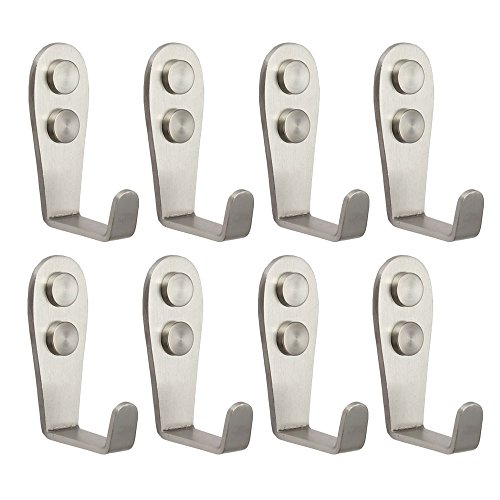 Mellewell 8 PCS Single L Shaped Robe Hook Towel Coat Hooks Kitchen Utensil Utility Hanger, Stainless Steel Brushed, 08007