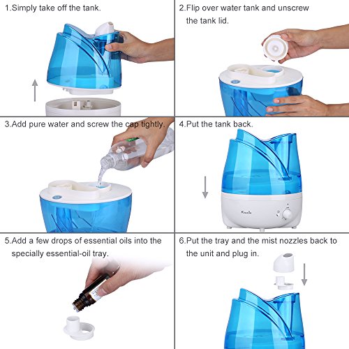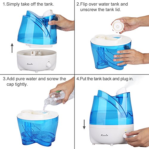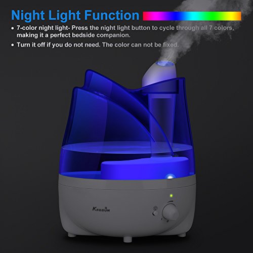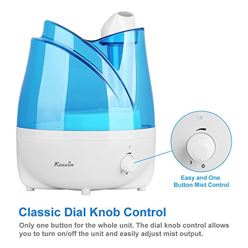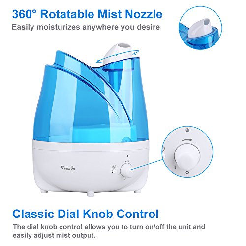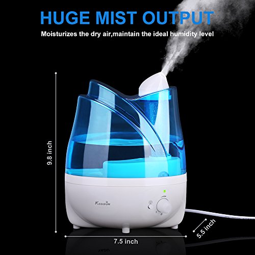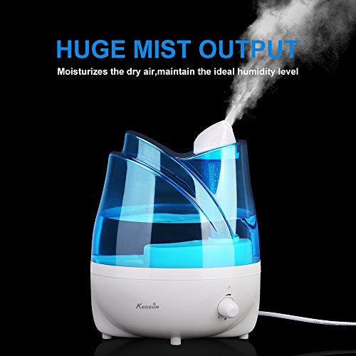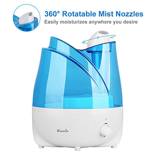 Studio : KEDSUM Publisher : KEDSUM Binding : Kitchen Product Description The KEDSUM Ultrasonic Humidifier hydrates and purifies the air with the pure water. Keep the air in your home moisturized all day long. This powerful and modern humidifier features adjustable mist dial knob control,360° rotatable mist outlets,whisper quiet,auto shut-off function that make it the perfect solution for improving the air quality in the dry areas of your home or office.