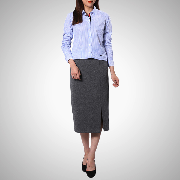 멜란지 컬러감과 밑단 슬릿 디테일이 돋보이는 펜슬 스커트입니다.