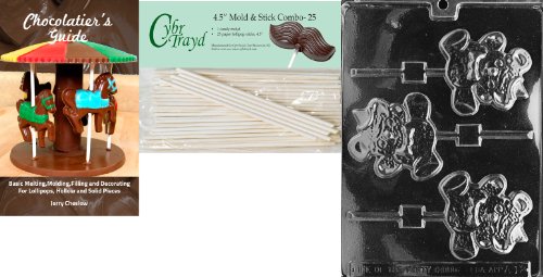 Cybrtrayd 'Party Teddy Lolly' Animal Chocolate Candy Mold with 25 4.5-Inch Lollipop Sticks and Chocolatier's Guide