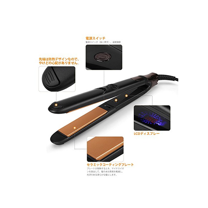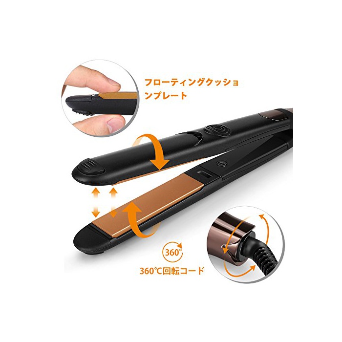 원본상품명: Amzdeal ヘアアイロン マイナスイオン ストレトヘアアイロン 海外 プロ仕180-230℃調節可能 出張 旅行 プロ仕 360 度回可能電源コド 18ヶ月の保障期間