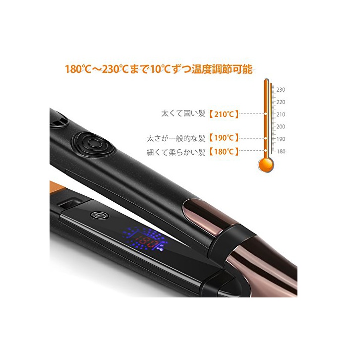 【온도 조절 가능】프로 사양의 230℃까지,온도가 180℃부터 10℃씩 조절 가능합니다.LCD온도 디스플레이가 탑재되고, 온도가 잠거지는 기능도 붙는 때문에,온도 조절이 알기 쉽게,온도가 도중으로 바꾸기도 하지 않습니다.