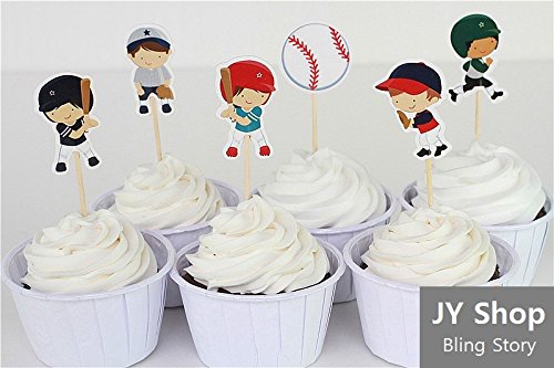 24pcs Baseball Sport Boys Cupcake Toppers Picks Baby Shower Kids Birthday Party Supplies Cake Decorations
