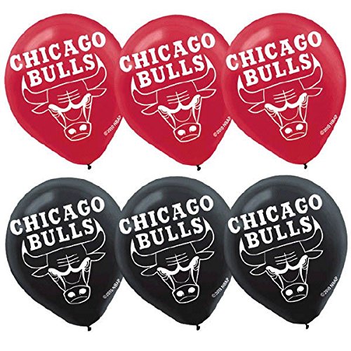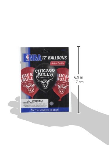 Amscan Chicago Bulls Printed Latex NBA Basketball Team Party Balloons, 12", Black/Blue