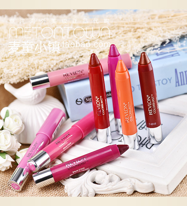 Revlon最近又翻天了,出了一整个新系列。叫做Revlon Just Bitten Kissable Balm Stain.外形和clinique的chubby pen几乎是一模一样。revlon真是有才的copy cat。各种山寨。由于有revlon lip butter的好感,我就把这个系列也买全了。前6个试个色全试色