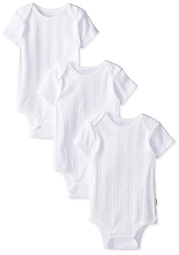 -. Feature : Three-pack of short-sleeve bodysuits in drop-needle fabrication with vertical ribbed stripes / Lap-shoulder neck openings / Two rows of three-snap closures / Tagless neck labels