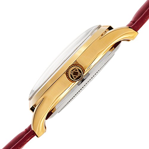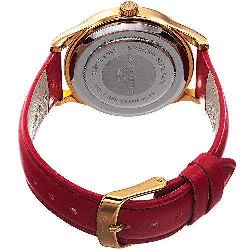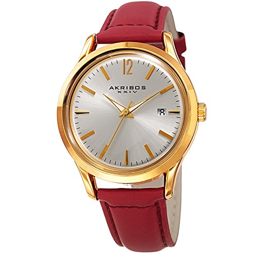 -. Title : Akribos XXIV Women's Quartz Gold-Tone Case with Gold-Tone Accented Silver Sunray Dial on Red Glove Style Genuine Leather Strap Watch AK921RD
