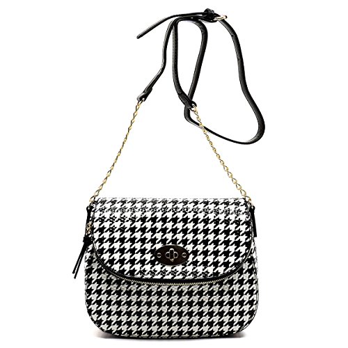 Glossy Houndstooth/Leopard Cross Body Bag Satchel Handbag.