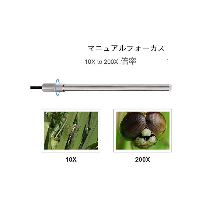 원본상품명: Teslong 微鏡 カメラ 集積Micro-USBのインタフェスとUSBインタフェス 最大の大倍200倍 720Pのハイビジョン質 携式微鏡 ピントは調節することができますIP