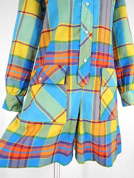 Ladies ブランド- カラーカラフル メール便不可 コンディション★★★ 素材コットンと思われます。 表記サイズ記載なし 実寸サイズ 着丈 84 cm 身幅 44 cm 肩幅 36 cm 袖丈 58 cm レングス(股下) 6 インチ(16 cm) 股上 73 cm 太もも幅 33 cm 裾幅 34.5 cm ※ウエスト・ヒップ以外は平置き採寸【code】#b