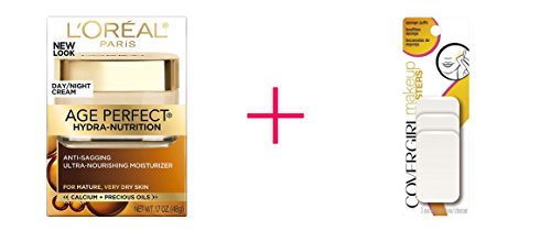 Product Description THREE ITEMS BUNDLE: 2 of L'Oreal Paris Age Perfect Hydra-Nutrition Ultra-Nourishing Moisturizer Day/Night Cream AND CoverGirl Makeup Masters Sponge Puffs 0