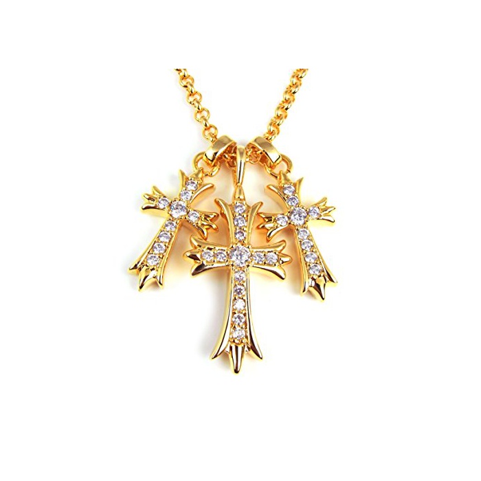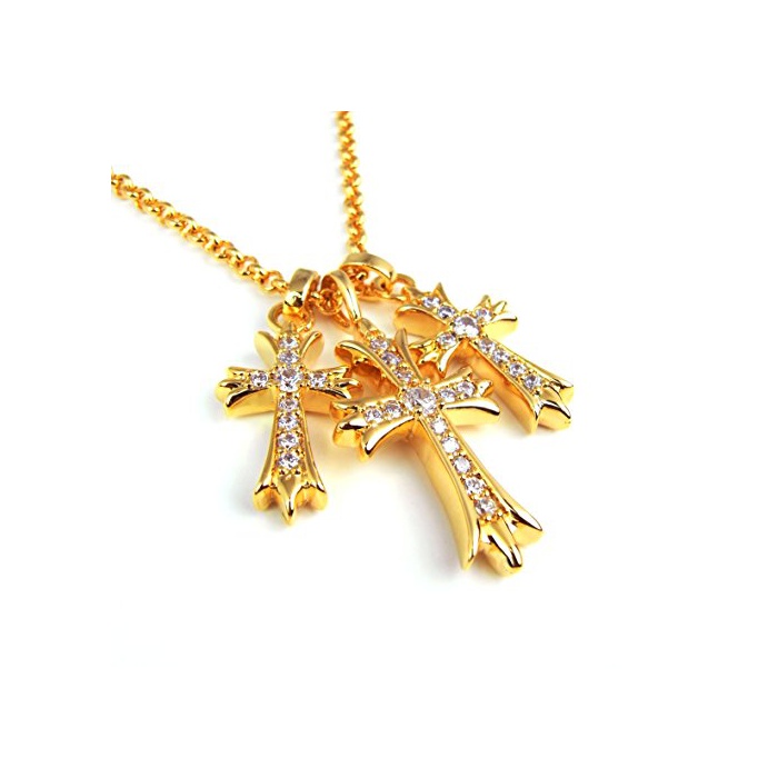 원본상품명: 22K GP ジルコニア トリプル クロス ネックレス 十字架 ペンダントトップ 人 ブランドsbg-215 (ゴルド)