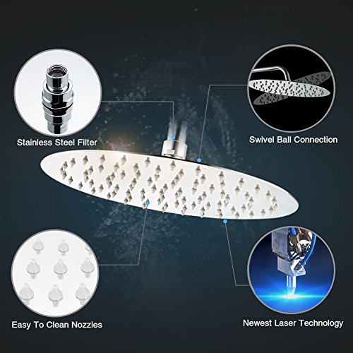 SR SUN RISE 12-inch Luxury Round Rainfall Shower Head Wall Mount High Pressure Rain Showerhead Ultra Thin Chrome Finish SRSH-1201G