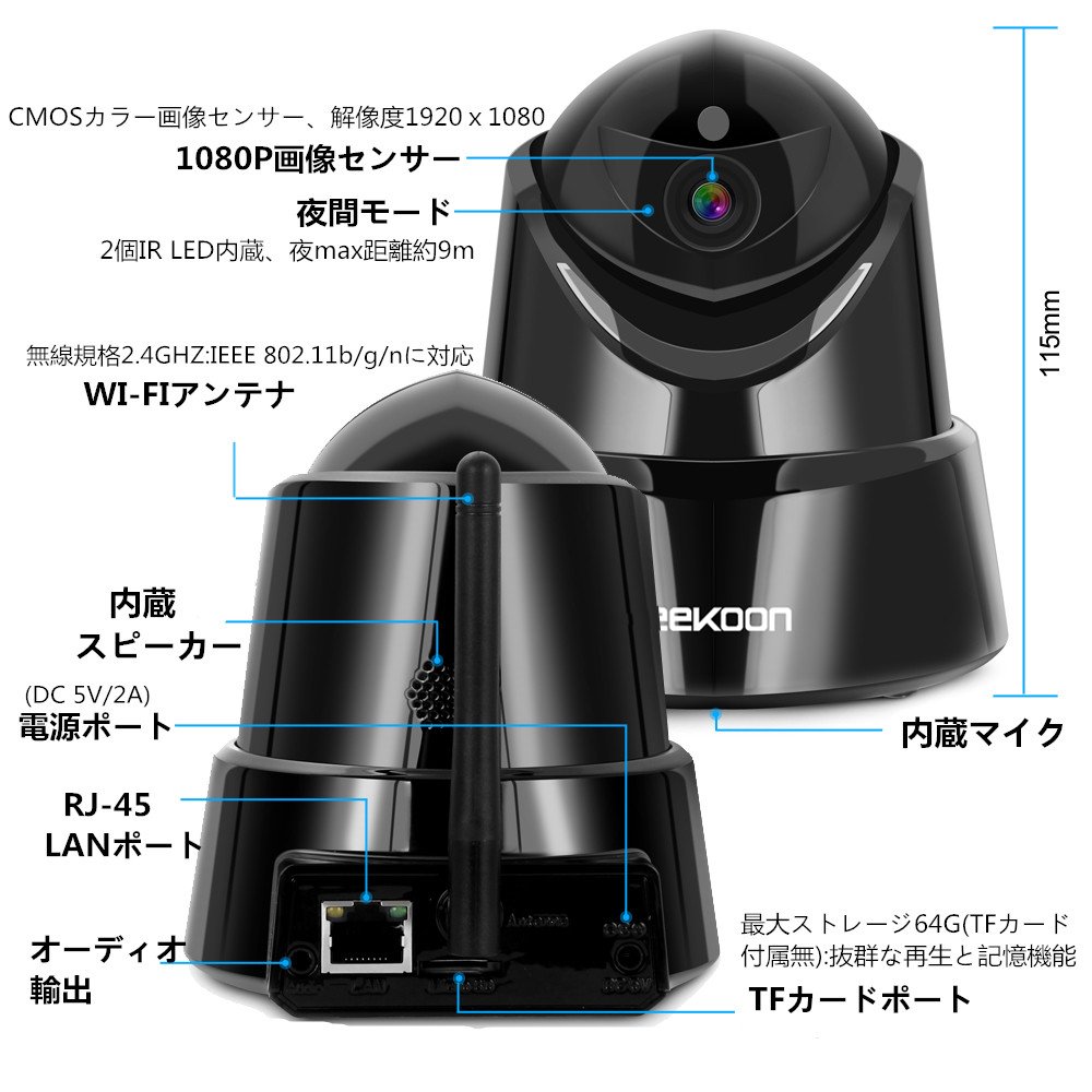 Keekoon Network Camera 2017 latest version <2 million pixels · 1080P HD high image quality · Wi-Fi compatible · night vision function · two-way voice communication · fixed viewpoint>