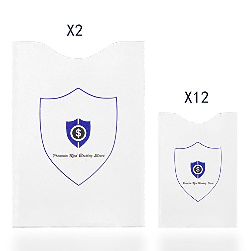 - Feature : FREE COMBINATION - The quantity combination of RFID Blocking Card Protector Sleeves is 12 credit cards sleeve and 2 passports sleeve, a total of 14 / BEST DESIGN - Our RFID Blocking Sleeve were made of Special metal material ,effectly interrupt the RFID scan,Shields the following types of cards: All new contactless credit cards, US Passport Cards, Enhanced / PERFECT SIZE- RFID protector sleeves are thin, lightweight and designed to fit all standard passport and credit/identification/transit card sizes. They fit easily inside any wallet, purse, handbag / GREAT GIFT - A thoughtful, affordable, popular & very useful personal or business gift! Small price for Peace of Mind to help you and loved ones sleep well at night! / BUY CONFIDENTLY GUARANTEE - We know you'll love our sleeves, that's why if you aren't 100% satisfied, we will provide you with a refund or a free replacement - whichever you prefer