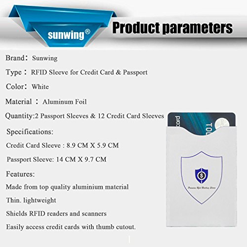 - Title : RFID Blocking Sleeves ,Sunwing (12 Credit Cards and 2 Passport Protectors) Multi quantity,free combination,Fit Wallet,purse, handbag,Shields Radio Frequency ID (White)