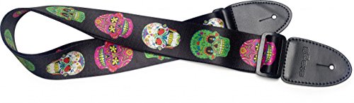 -. Title : Stagg STE MEX SK 3 Guitar Strap, Green and Pink Mexican Skulls