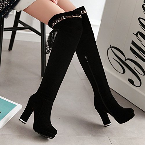Binding : Apparel Product Description The pair of right shoes can make all the difference. The boots season comes. A pair of long boots is a must-have for a lady who want to be impressed in the crowed. If you're trying to get boots that will send a message with your every step, there's no finer footwear to add glamour close to you than these tall boots from Mofri. These boots don't whisper; they scream with their distinctive and trendy design. This pair of boots make you stand out in any crowd and are sure to heat things up no matter what you wear with them. The block heels raise your height and giving the shoes a chunky shape that is reflection of the latest trends. These shoes from Mofri is made from top quality vegan synthetic leather. Leave those boring basic boots behind. Make this pair boots as your fashion secret weapon and you'll be able to have some sexy appeal which will be the soul of your everyday ensembles. Order a pair in your favorite color! Can't decide? Why not get more? You'll still pay less than the price you would for a single designer pair elsewhere. We will make you always be on the cutting edge of women' s fashion. Mofri is a legal trademark which has registered in United Stated Patent Trademark Office. All right reserved. 0