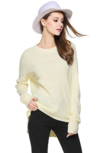 -. Title : DSkira レディースレディース ニット セーター 長袖 Uネック/ラウンド ゆったり/ドロップショルダー オーバーサイズ 無地 C082 (カスタード)