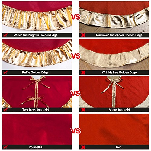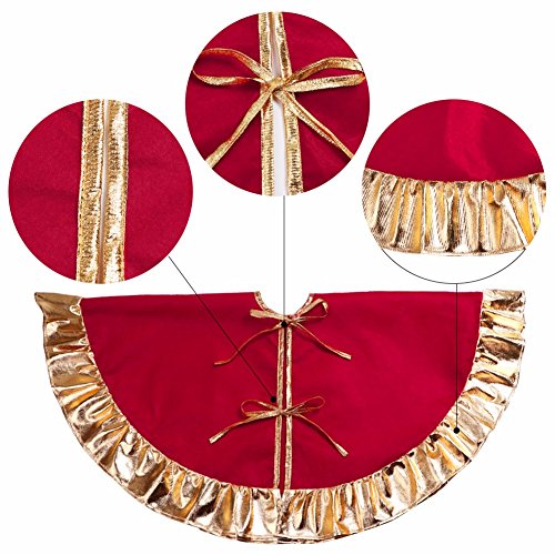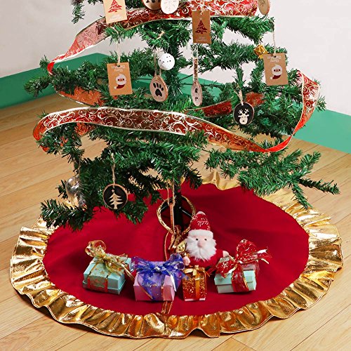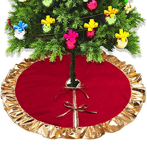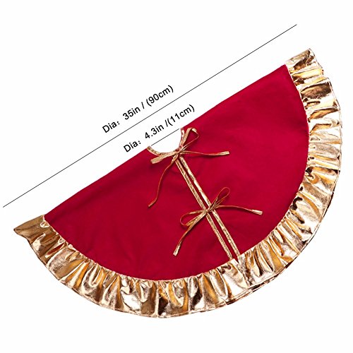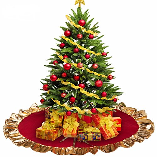 RED CHRISTMAS TREE SKIRT WITH GOLDEN RUFFLE EDGE NEW YEAR DECORATIONS, 36 INCH