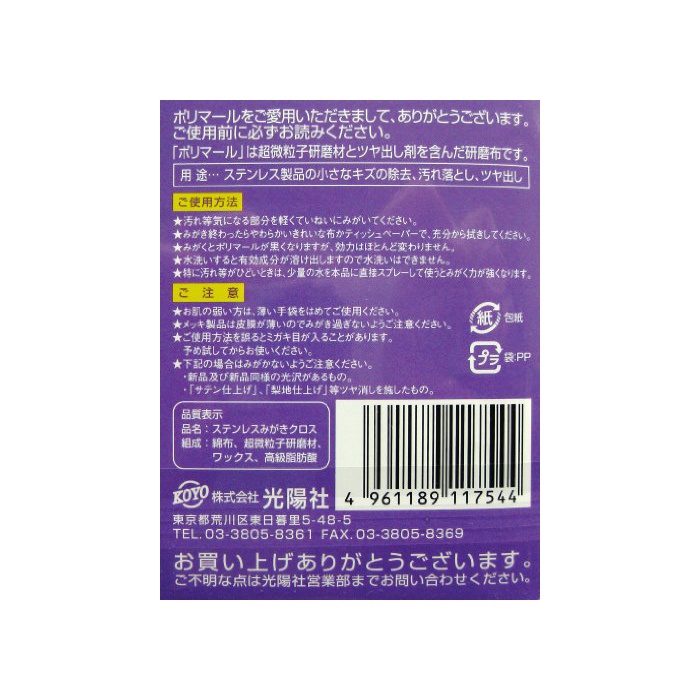 원본상품명:光陽社 ポリマル SP ステンレスみがきクロス