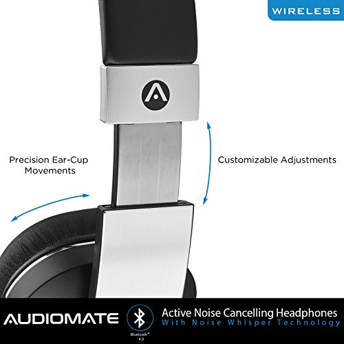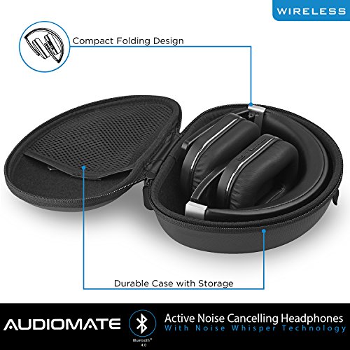 -. Binding : Electronics -. Brand : Audiomate -. Color : Black -. EAN : 0814578022919 -. Feature : WORLD'S #1 AIRPLANE HEADPHONE: Includes an airplane adapter and an auxiliary cable, making it a must-have for travel and a great gift idea for travelers of any age. Combined with the newest noise cancelling technology, airplane noise is a thing of the past. / NOISE WHISPER TECHNOLOGY: Cutting-edge research in the science of acoustics has led Audiomate to the forefront of listening technology and to the development of their unique advancements in active noise cancelling. A stunningly clear sound chamber is created to deliver your music like you've never heard before. / CD QUALITY SOUND: The aptX audio codec compression algorithm maximizes clarity and accuracy of Bluetooth streaming creating a CD quality sound delivered wirelessly to your headphones. / Bluetooth 4.0: The latest 4.0 technology has been implemented to bring you crystal-clear, well-balanced music playback with Hi-Fi sound and flawless, uninterrupted hands-free calls. / EXTENDED PLAYTIME: Enjoy non-stop up to 14 hours of music or talk time on a single charge. Enough juice for even the most lengthy flights. iOS devices will display battery status. -. Label : Audiomate -. Manufacturer : Audiomate -. MPN : BTNC152 -. PackageQuantity : 1 -. PartNumber : BTNC152 -. ProductGroup : CE -. ProductTypeName : CONSUMER_ELECTRONICS -. Publisher : Audiomate -. Studio : Audiomate -. Title : Audiomate BTNC152 Active Noise Cancelling Wireless Bluetooth Over-Ear aptX HiFi Stereo Folding Travel Headphones w/ Airplane Adapter + Hard Case -. UPC : 814578022919