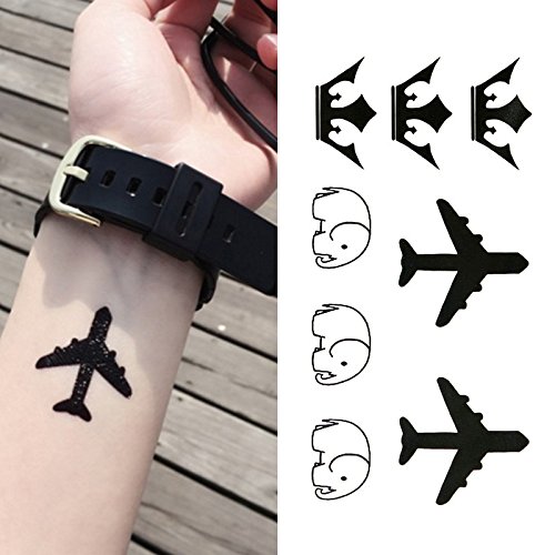 Oottati Small Cute Temporary Tattoo Aircraft Crown Elephant Wrist (Set of 2)