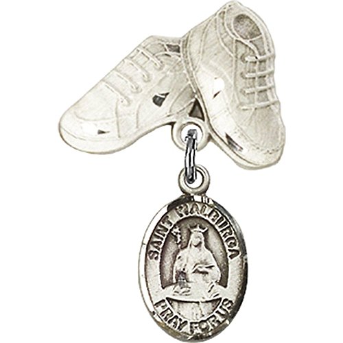 -. Title : Sterling Silver Baby Badge with St. Walburga Charm and Baby Boots Pin 1 X 5/8 inches
