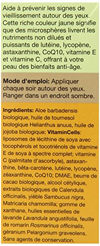 -. Binding : Health and Beauty -. Brand : Ecco Bella -. Department : Health and Beauty>Health and Wellness -. EAN : 0036923001855 -. Feature : Our natural eye cream is water-free, preservative-free and for sensitive skin. Pure protection to postpone the signs of aging and maintain the smoothness around the eyes. / Trillions of VitaminCells, which are vitamins protected by microscopic liposomes dive deep into the skin and slowly release their age-fighting benefits. / Will not cause breakouts. / 50% organic. Gluten-free. / Vegan. Not tested on animals. -. IsAdultProduct : 0 -. Label : Ecco Bella -. LegalDisclaimer : Actual product packaging and materials may contain more and different information than what is shown on our website. We recommend that you do not rely solely on the information presented and that you always read labels, warnings, and directions before using or consuming a product. Please see our full disclaimer below. -. Manufacturer : Ecco Bella -. Model : ECB01855 -. MPN : 185 -. NumberOfItems : 1 -. PackageQuantity : 1 -. PartNumber : 185 -. ProductGroup : Beauty -. ProductTypeName : BEAUTY -. Publisher : Ecco Bella -. Size : 1 -. Studio : Ecco Bella -. Title : Ecco Bella Eye Nutrients Cream with VitaminCells -. UPC : 885485444460